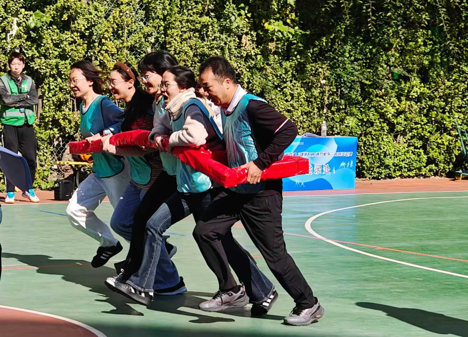 拔河比赛项目中,大家齐心协力、顽强拼搏,在对抗中展现强大凝聚力与集体荣誉感,不服输不放弃。